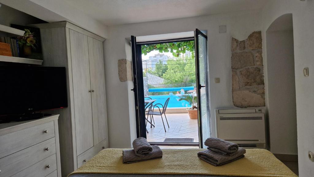 Guests will have a special experience as this apartment offers a pool with a view and a fireplace. Featuring a private entrance, this air-conditioned apartment consists of 1 living room, 1 separate bedroom and 1 bathroom with a shower and a hairdryer. Guests will find a stovetop, a refrigerator, a dishwasher and kitchenware in the kitchen. The apartment also offers a barbecue. Boasting a terrace with garden views, this apartment also provides a washing machine and a flat-screen TV with cable channels. The unit offers 2 beds.
